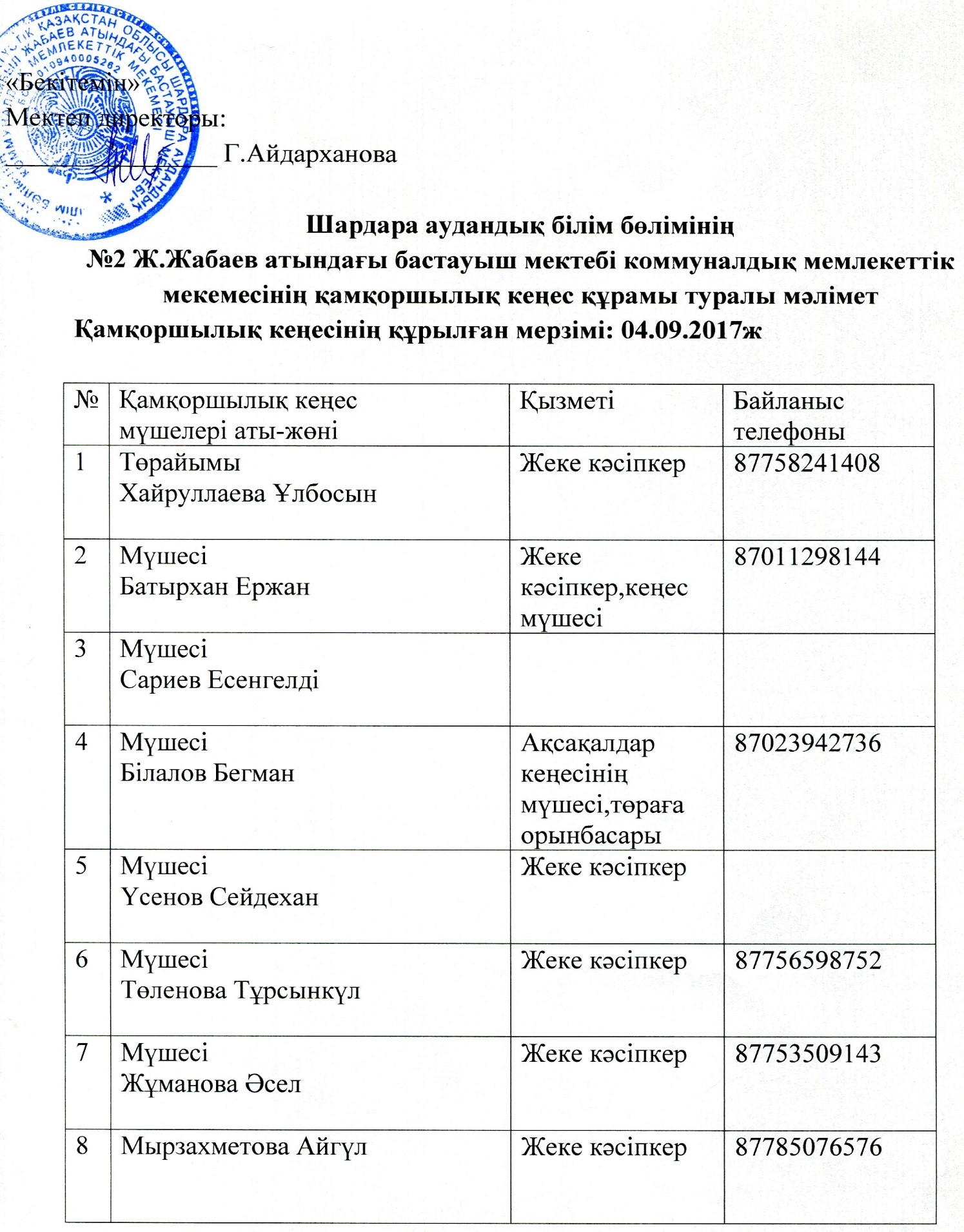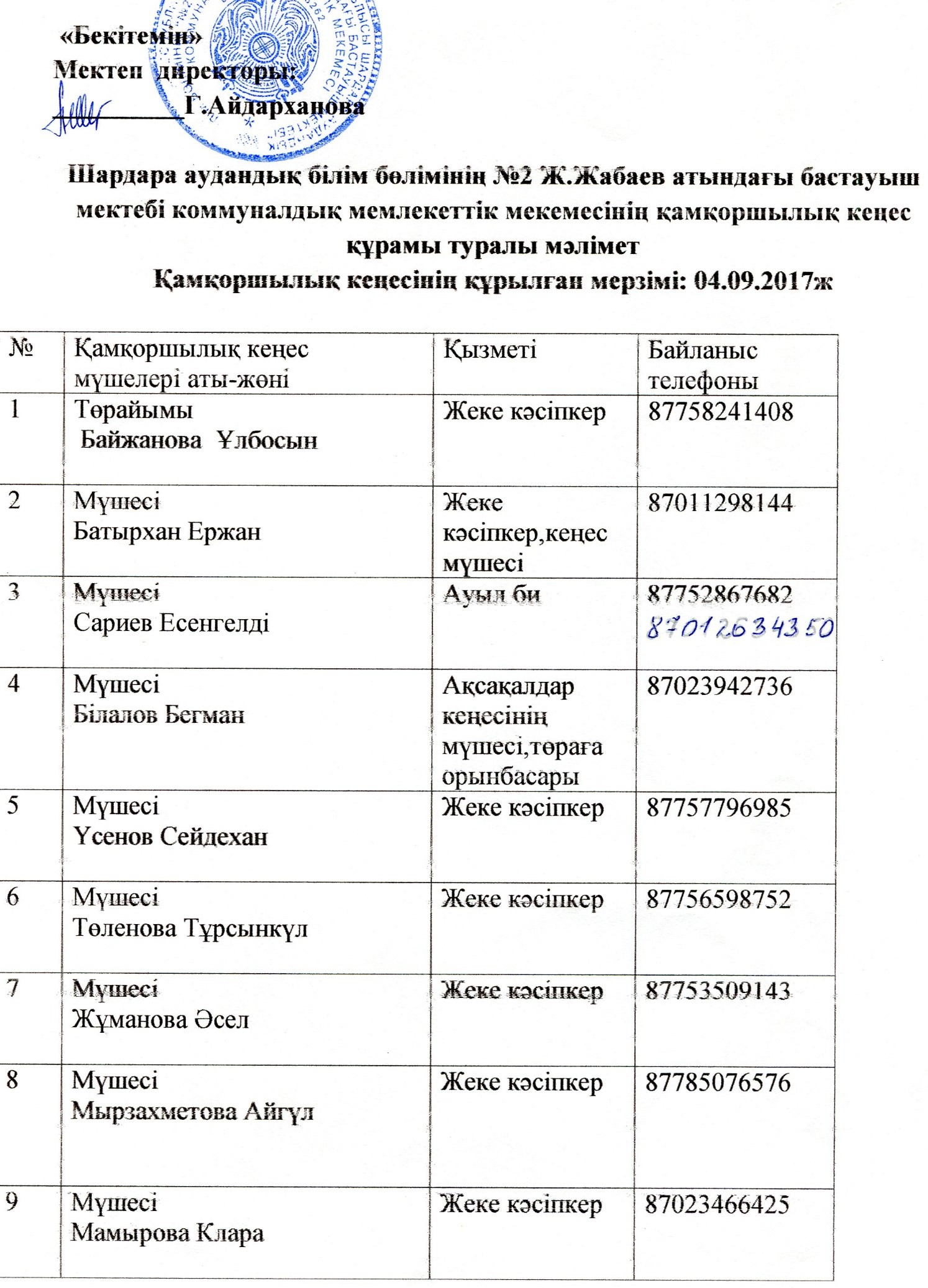 Қамқоршылық кеңес құрамы