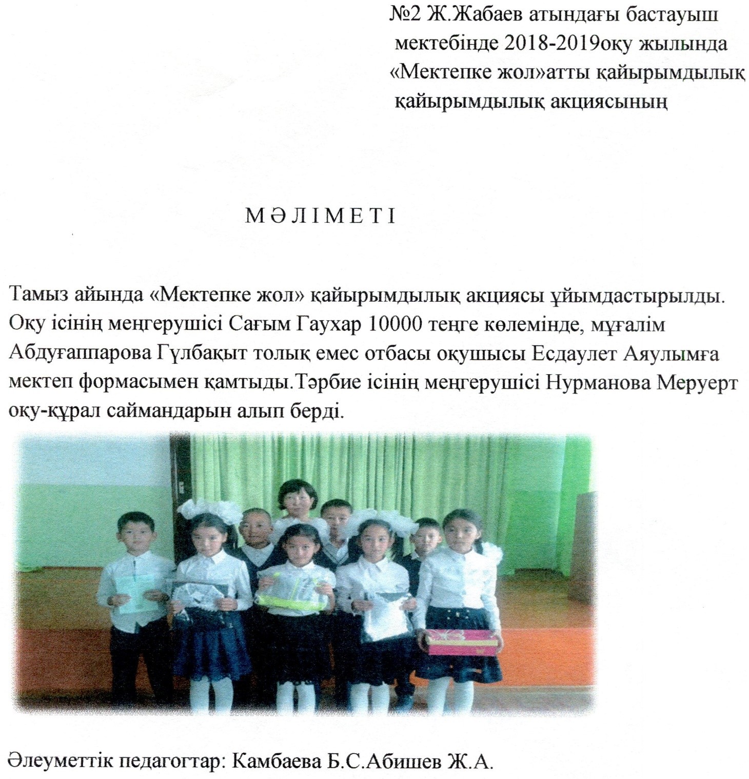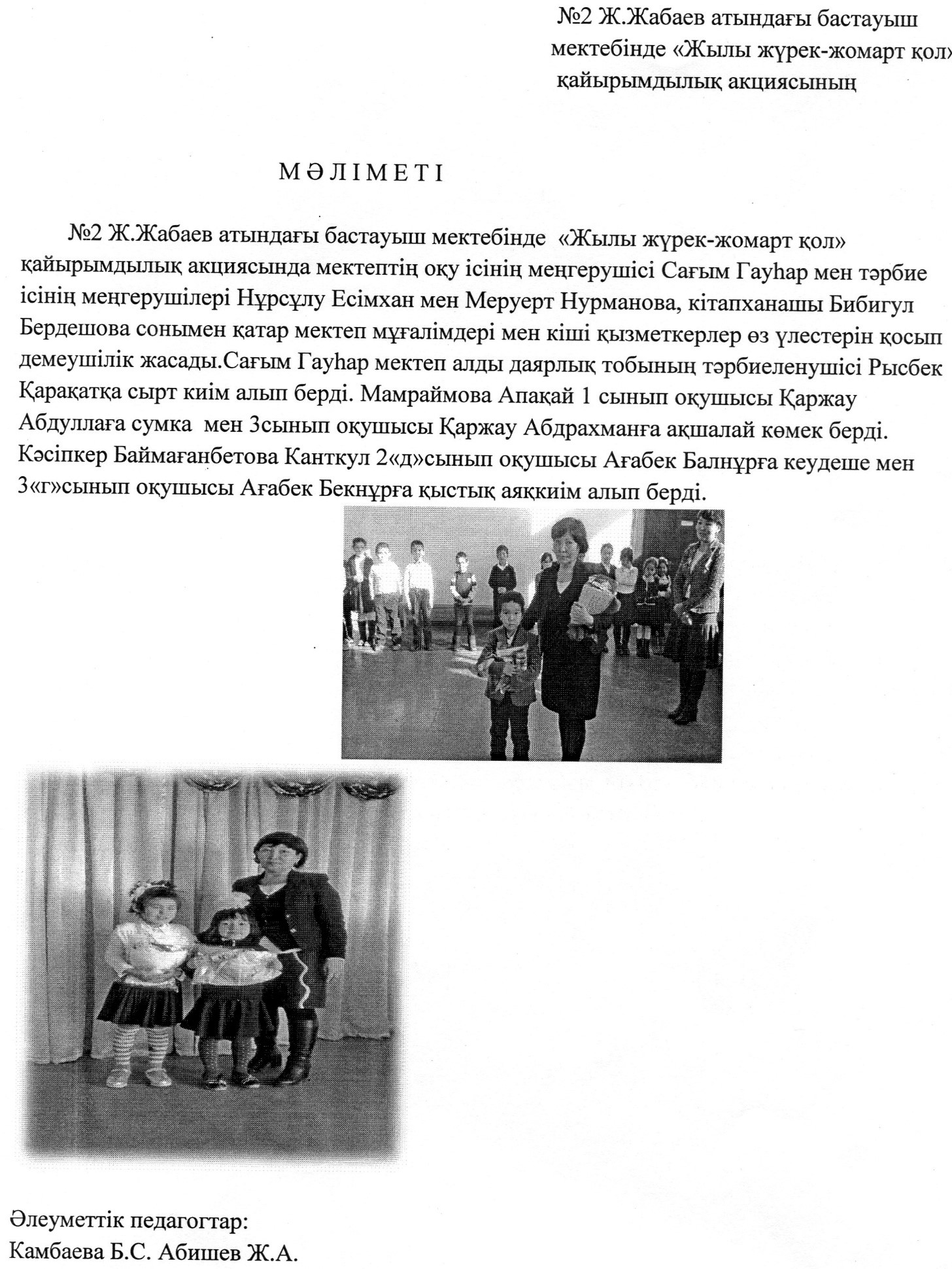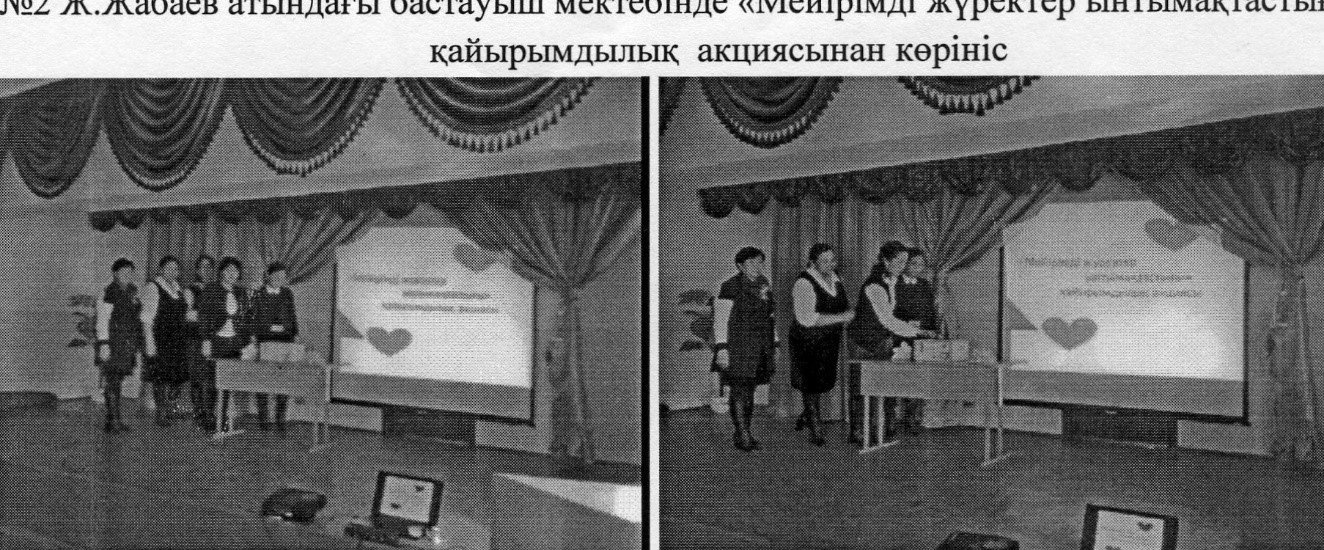 Ж.Жабаев атындағы бастауыш мектебнде мейірімді жүректер ынтымақтастық қайырымдылық акциясынан көрініс