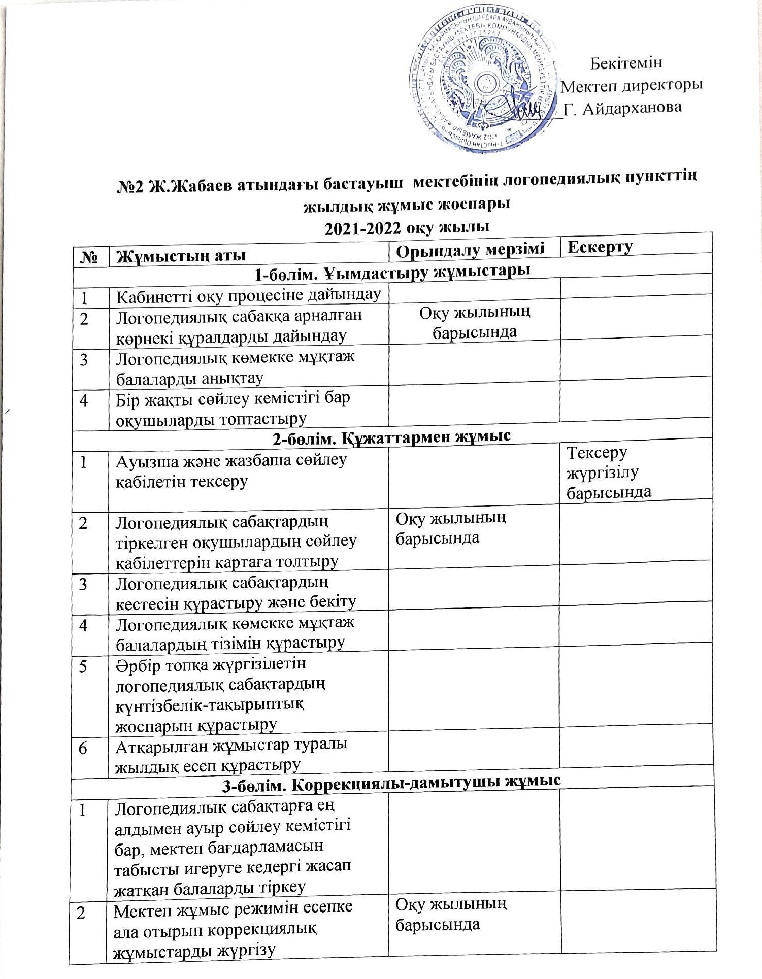 ПЕДАГОГ-ПСИХОЛОГТЫҢ ЖЫЛДЫҚ ЖОСПАРЫ