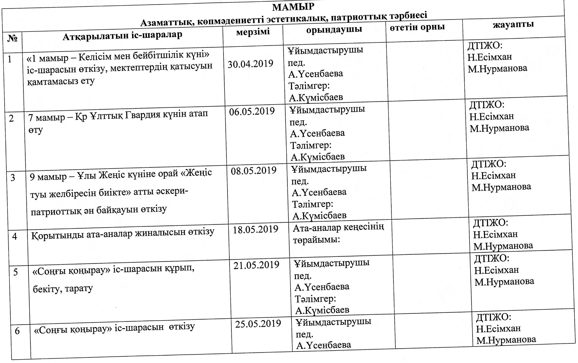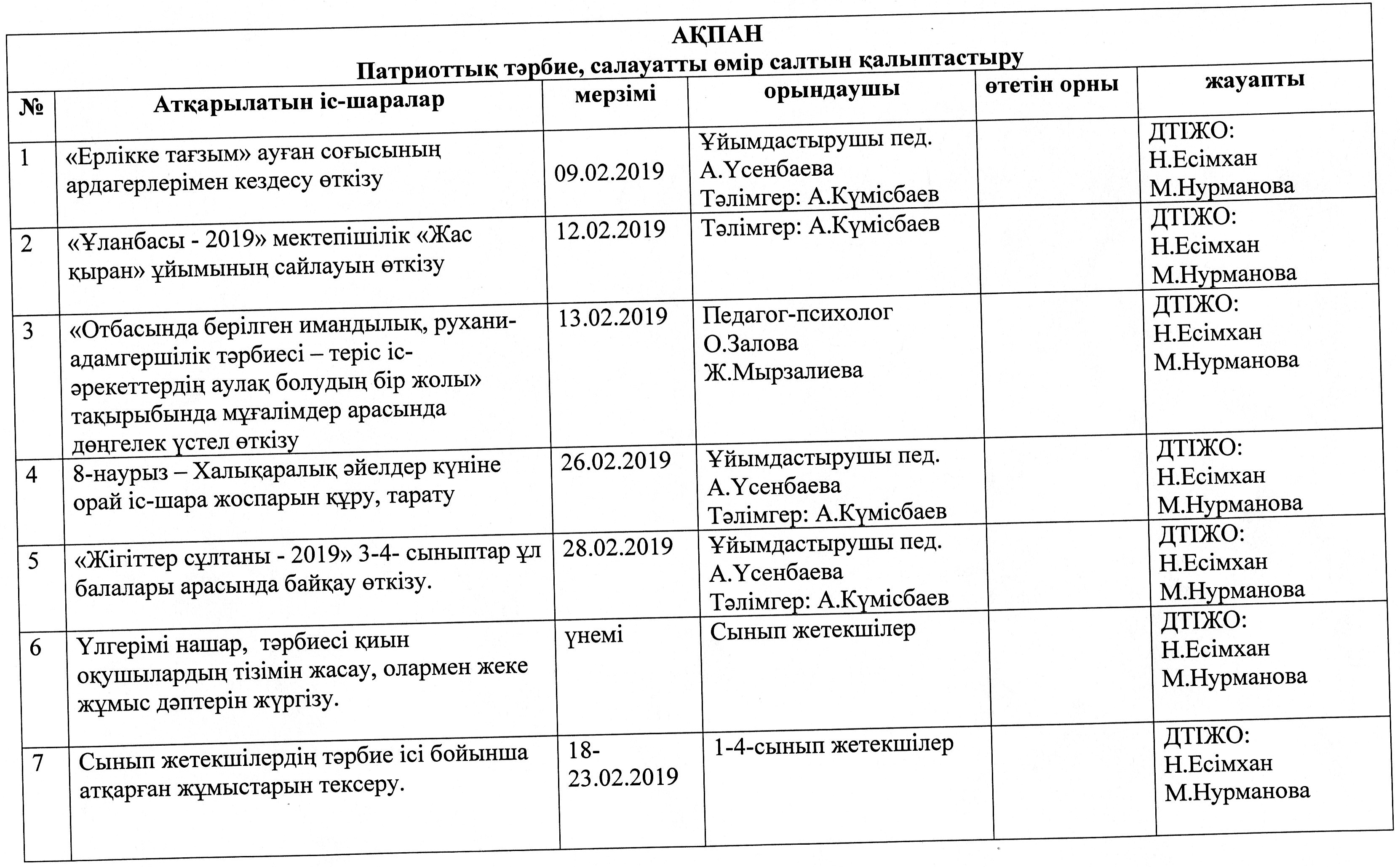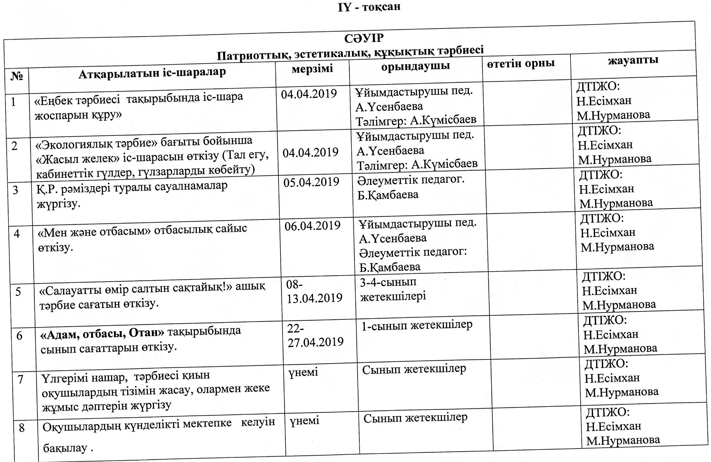 Тәрбие ісі жөніндегі орынбасарларының атқарған жұмыстарының есебі