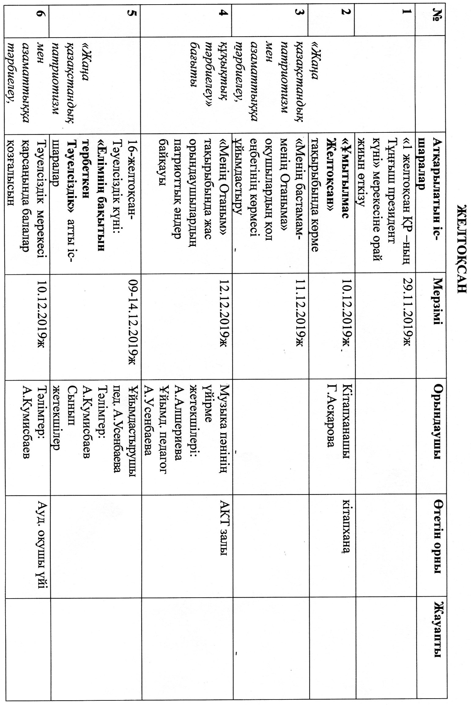 Оқу ісі жөніндегі орынбасарының жылдық жоспары