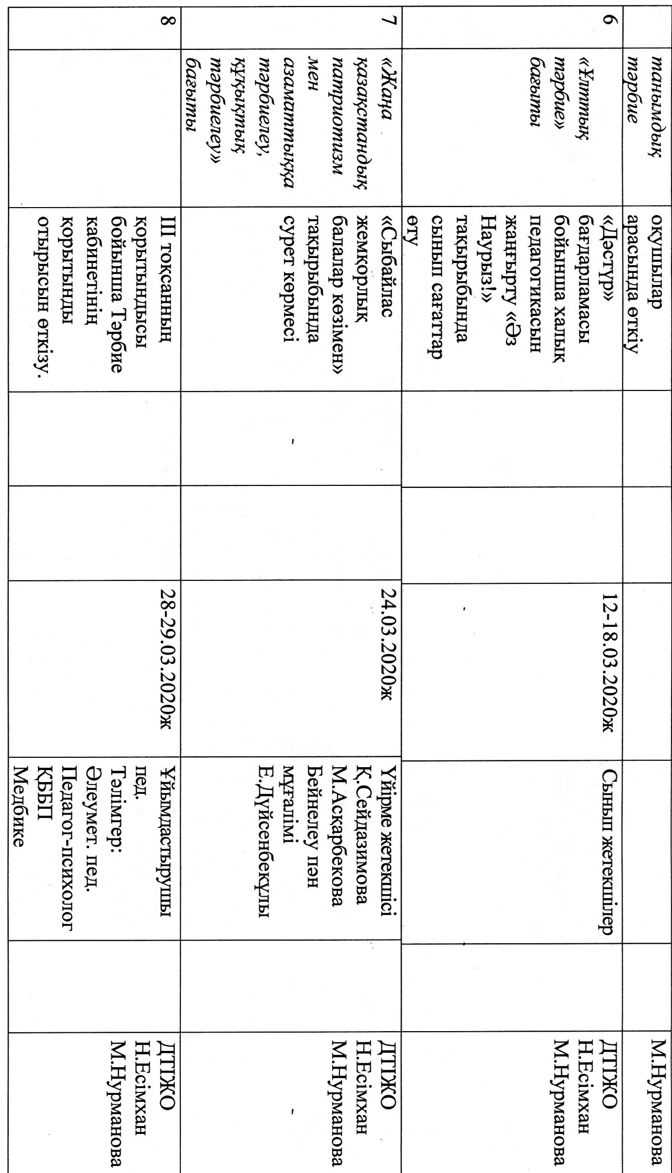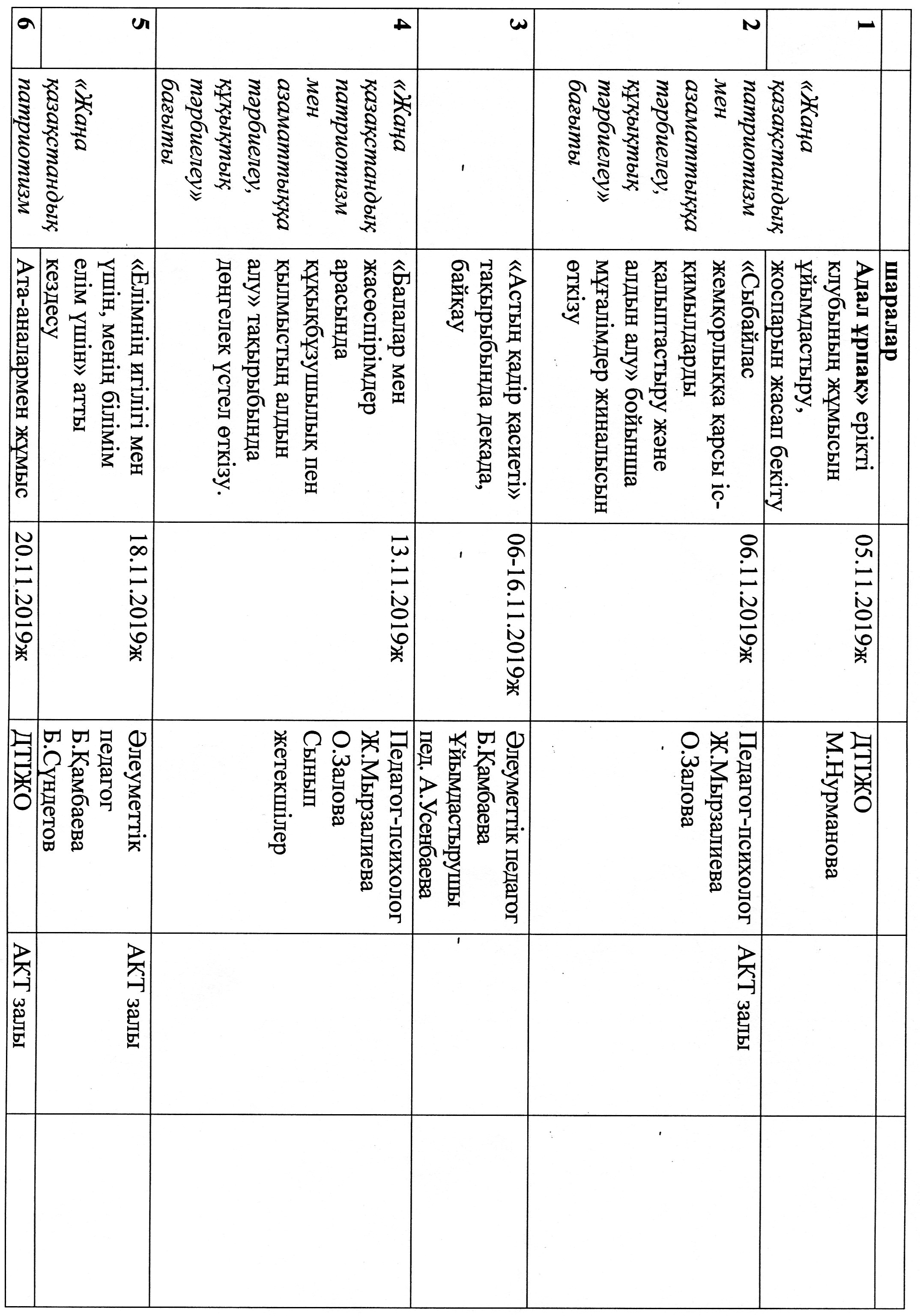 Тәрбие ісі жөніндегі орынбасарларының жылдық жоспары