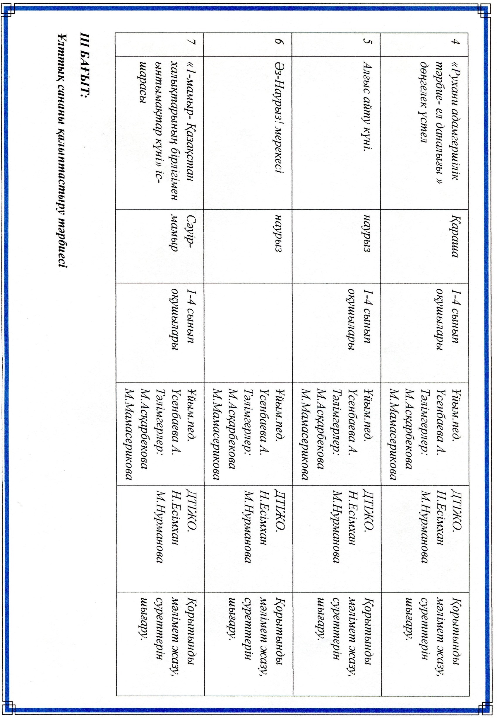 Тәрбие ісі жөніндегі орынбасарларының атқарған жұмыстарының есебі