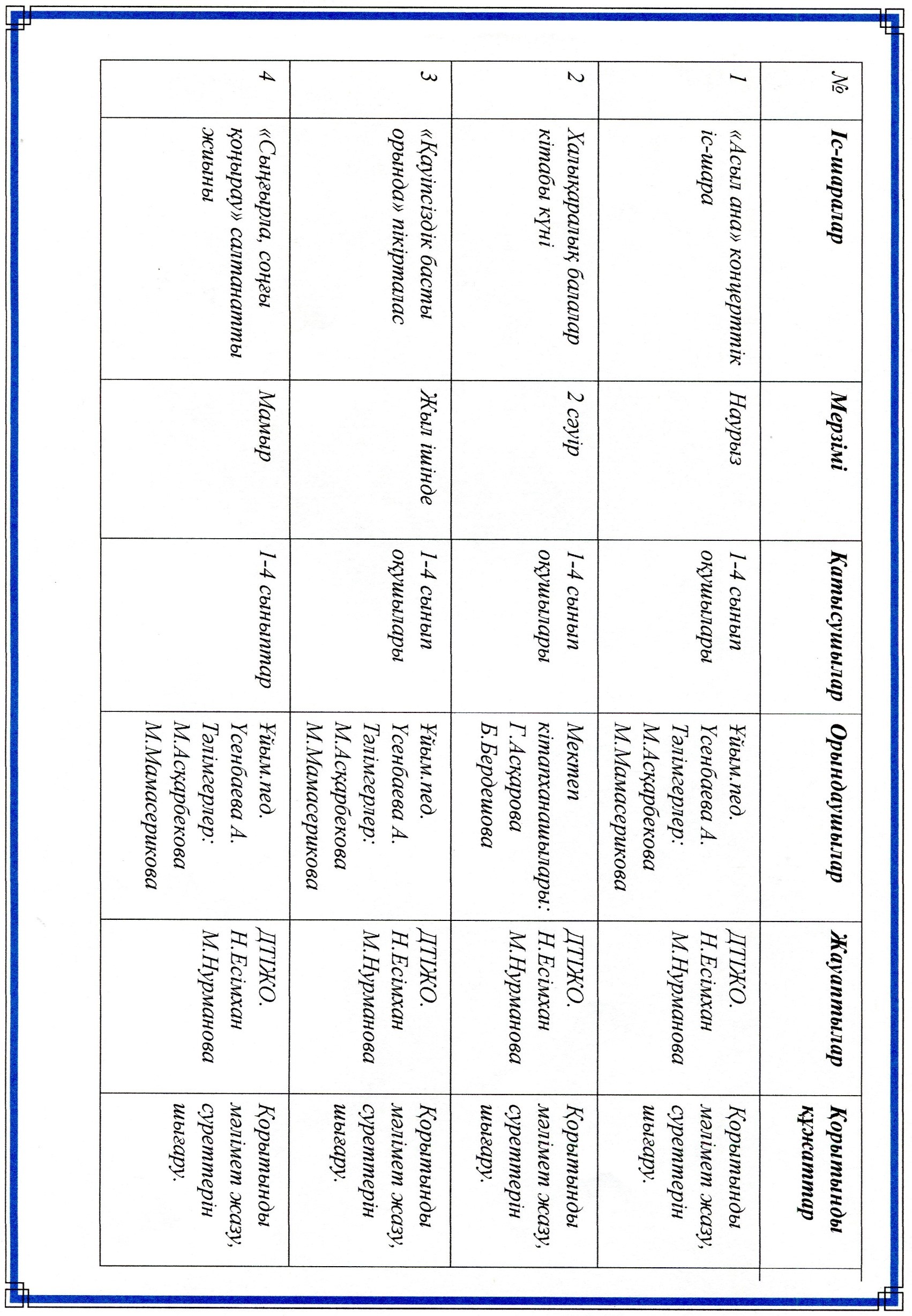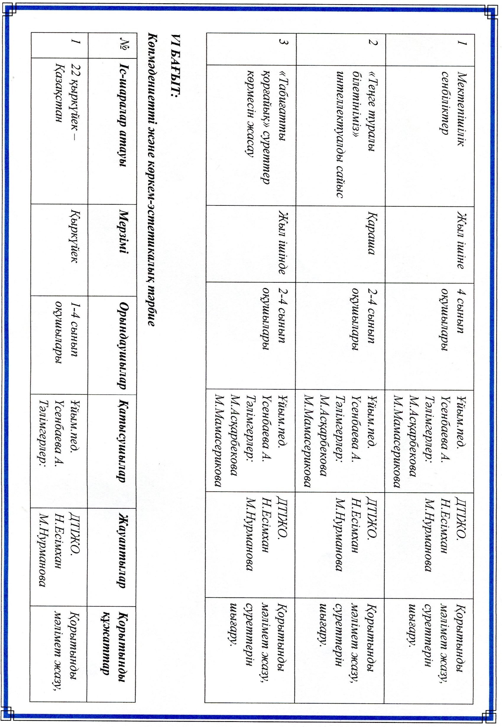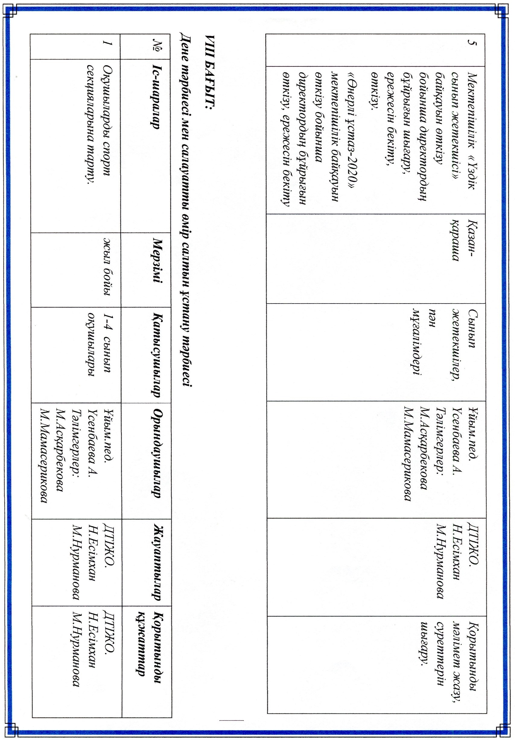 Оқу ісі жөніндегі орынбасарының жылдық жоспары
